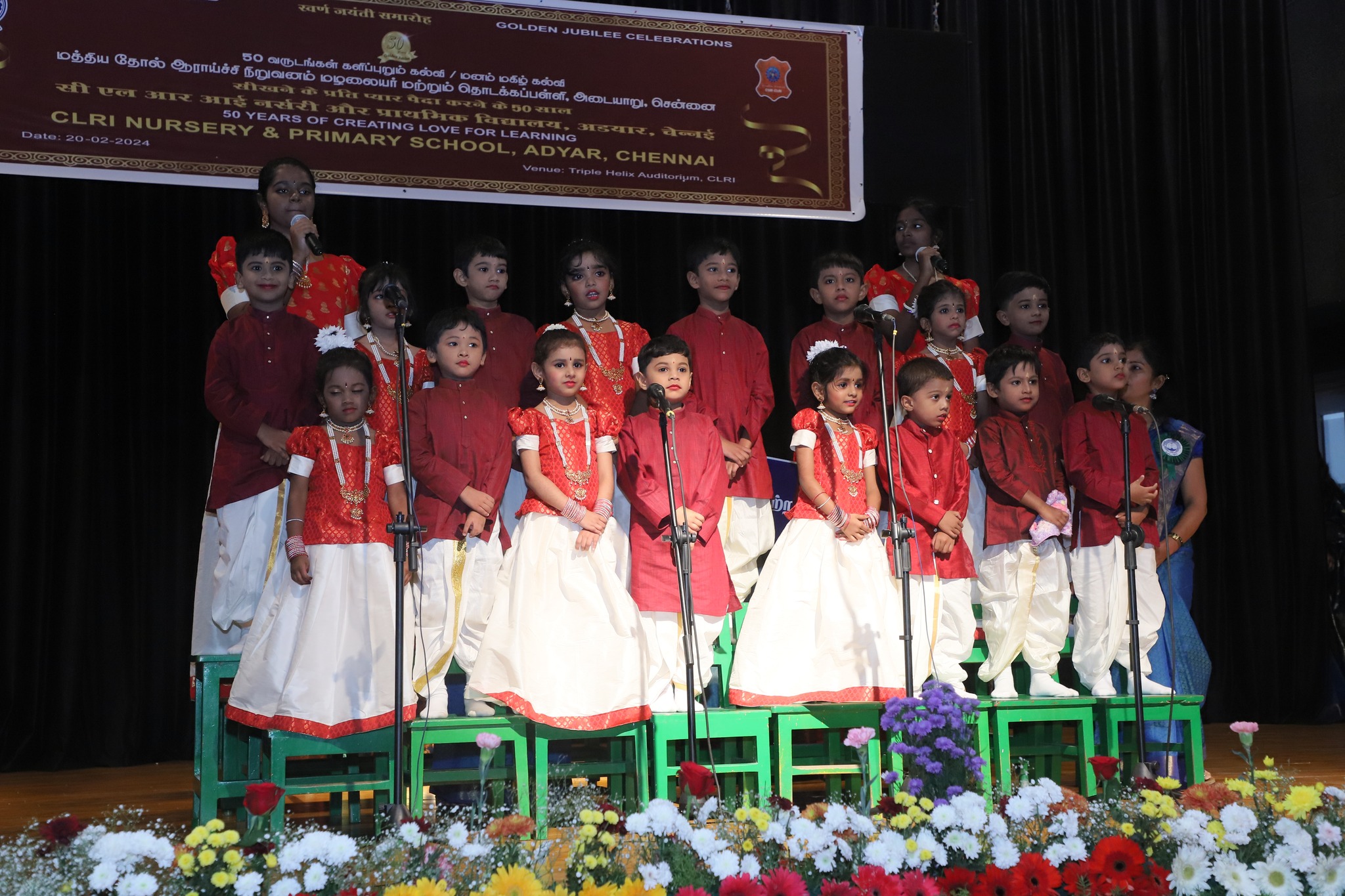 CLRI Nursery & Primary School - 50 Years Golden Jubilee celebrations held on 20-02-2024 at CSIR-Central Leather Research Institute . Chief Guest - Dr. (Mrs.) N. Kalaiselvi, Director General, CSIR, India & Secretary, DSIR graced the occasion and addressed the gathering.