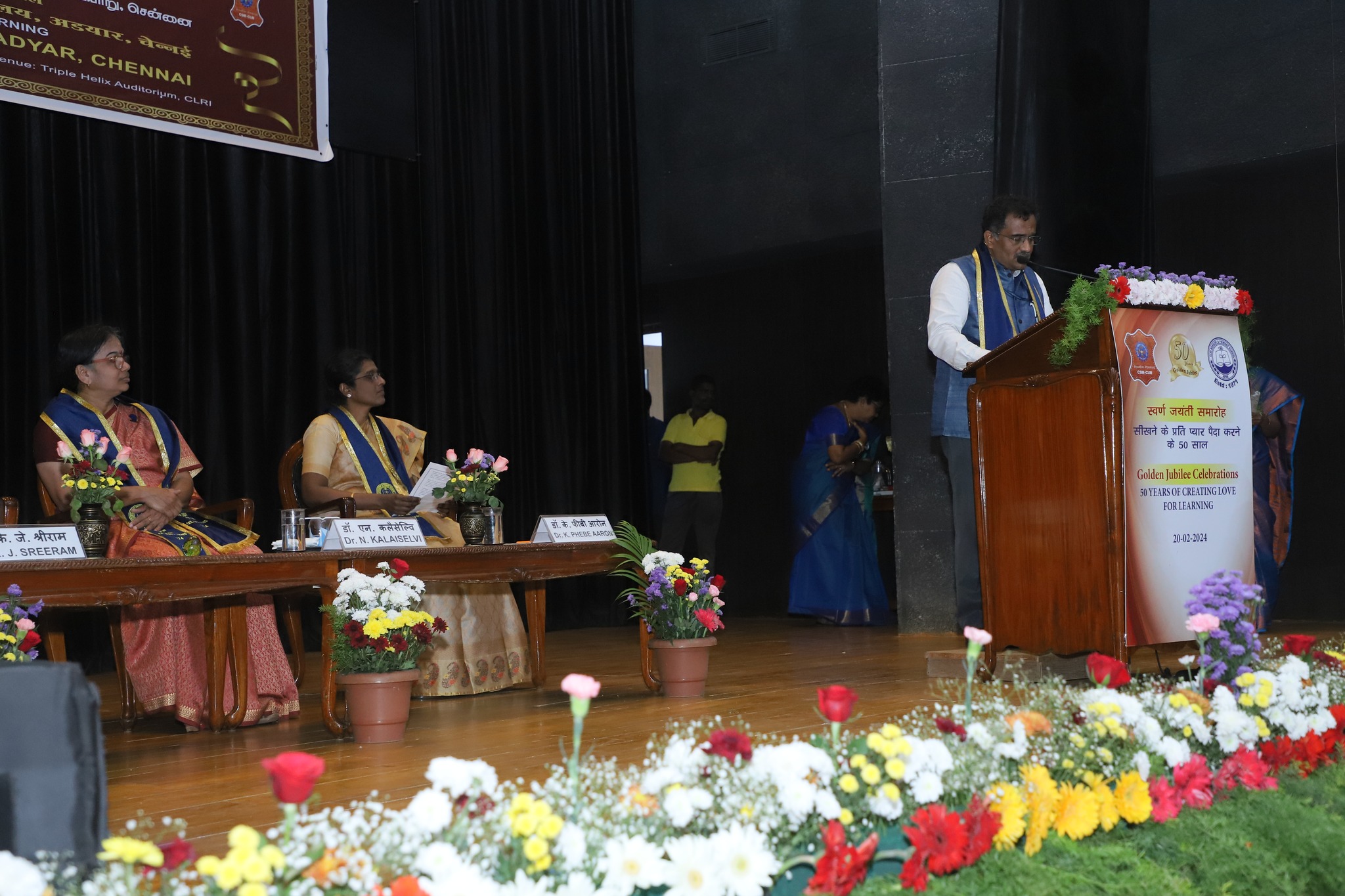 CLRI Nursery & Primary School - 50 Years Golden Jubilee celebrations held on 20-02-2024 at CSIR-Central Leather Research Institute . Chief Guest - Dr. (Mrs.) N. Kalaiselvi, Director General, CSIR, India & Secretary, DSIR graced the occasion and addressed the gathering.