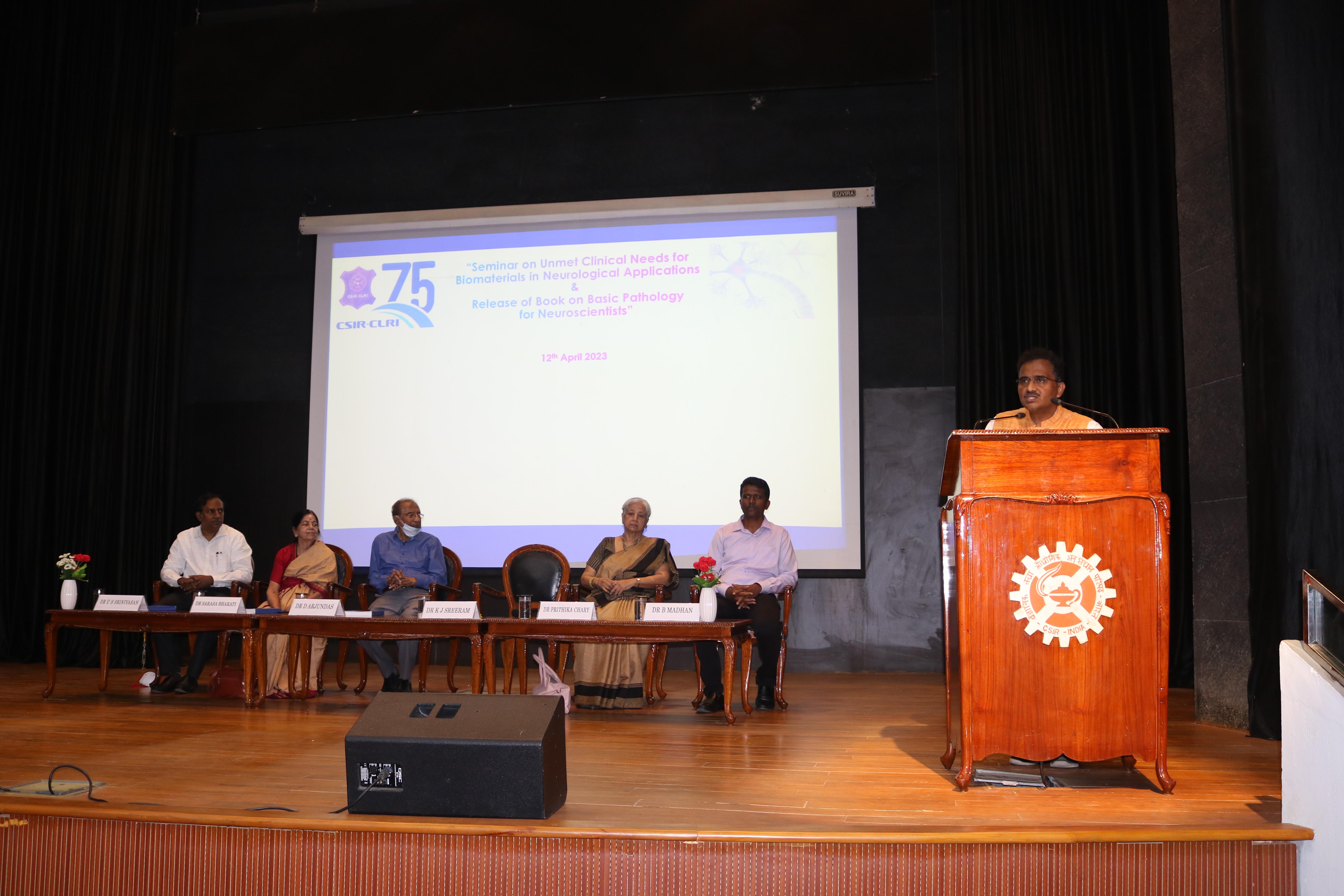 Seminar on the “Unmet Clinical Needs for Biomaterials with a Special Emphasis on Collagen Biomaterials in Neurological Applications” and the release of the book on “Basic Pathology for Neuro Scientists” held at CSIR-CLRI on 12th April 2023