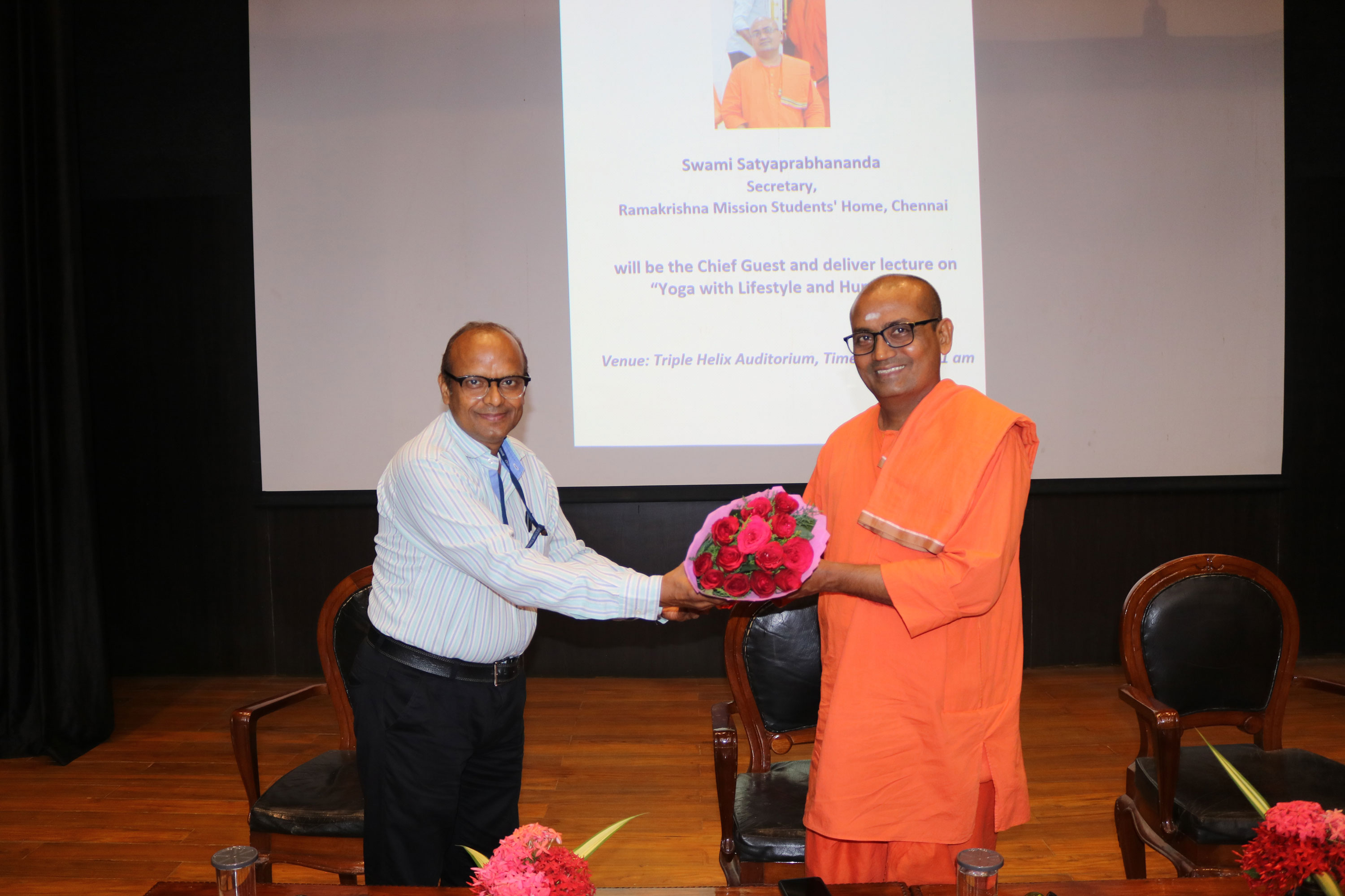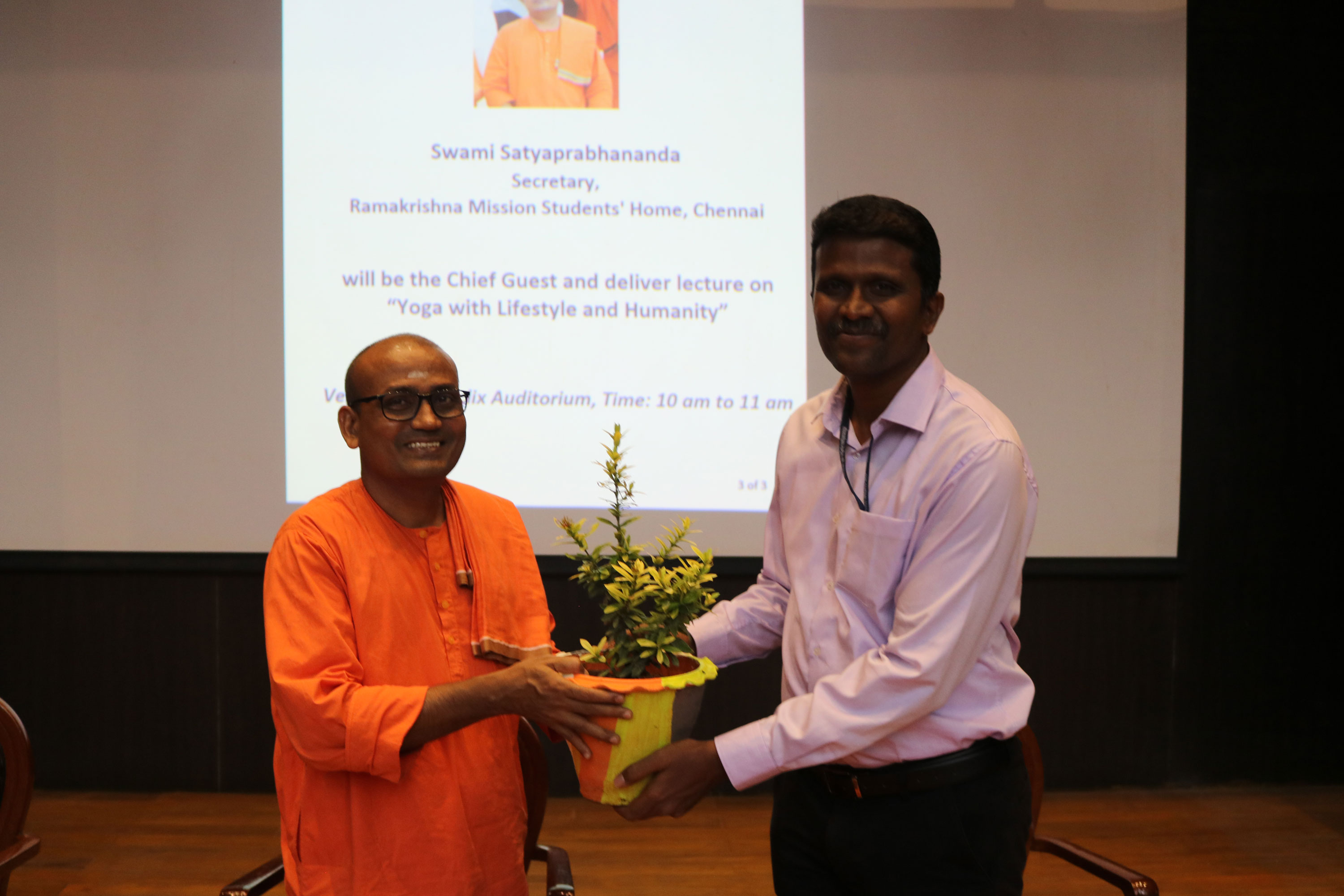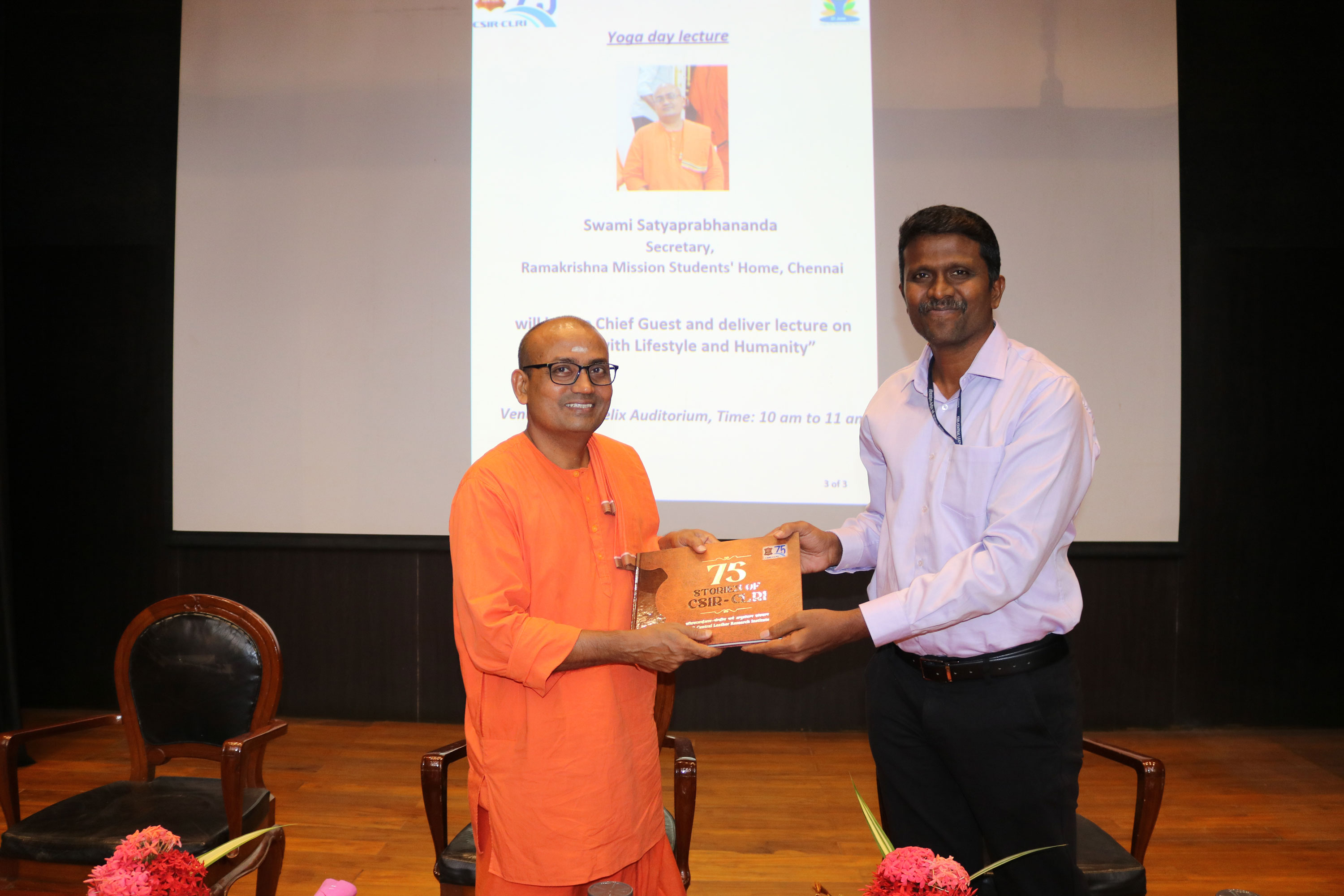 On the occasion of International Yoga Day 2023, Yoga Acharya" S. Ezhilarasi, Founder and Director, Yogalaya Health Care Institute, Chennai, gave a Yoga Day demonstration, and Swami Satyaprabhananda, Secretary, Ramakrishna Mission Students Home, Chennai, delivered the Yoga Day lecture.